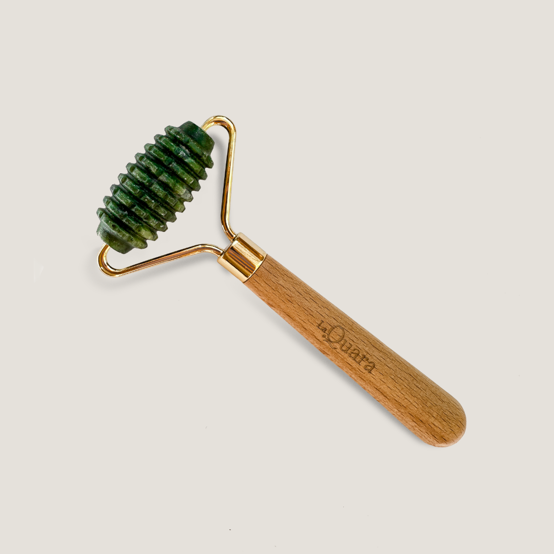 Nie masz go jeszcze w swojej kosmetyczce? Najwyższy czas to zmienić! Karbowany roller z naturalnego jadeitu to niezastąpione narzędzie w codziennej pielęgnacji twarzy, inspirowane rytuałami Dalekiego Wschodu. Wykonywany nim masaż sprzyja zachowaniu młodości i zdrowia skóry. Chłód jadeitowego wałeczka zmniejsza opuchliznę i cienie pod oczami, zwęża pory i poprawia krążenie krwi. Masaż rozluźnia mięśnie, zmniejszając widoczność drobnych zmarszczek. Pobudza cerę i sprzyja jej detoksykacji, uelastycznia ją, stymuluje włókna kolagenowe, zwiększa wchłanialność kosmetyków. Działa relaksująco i odprężająco.