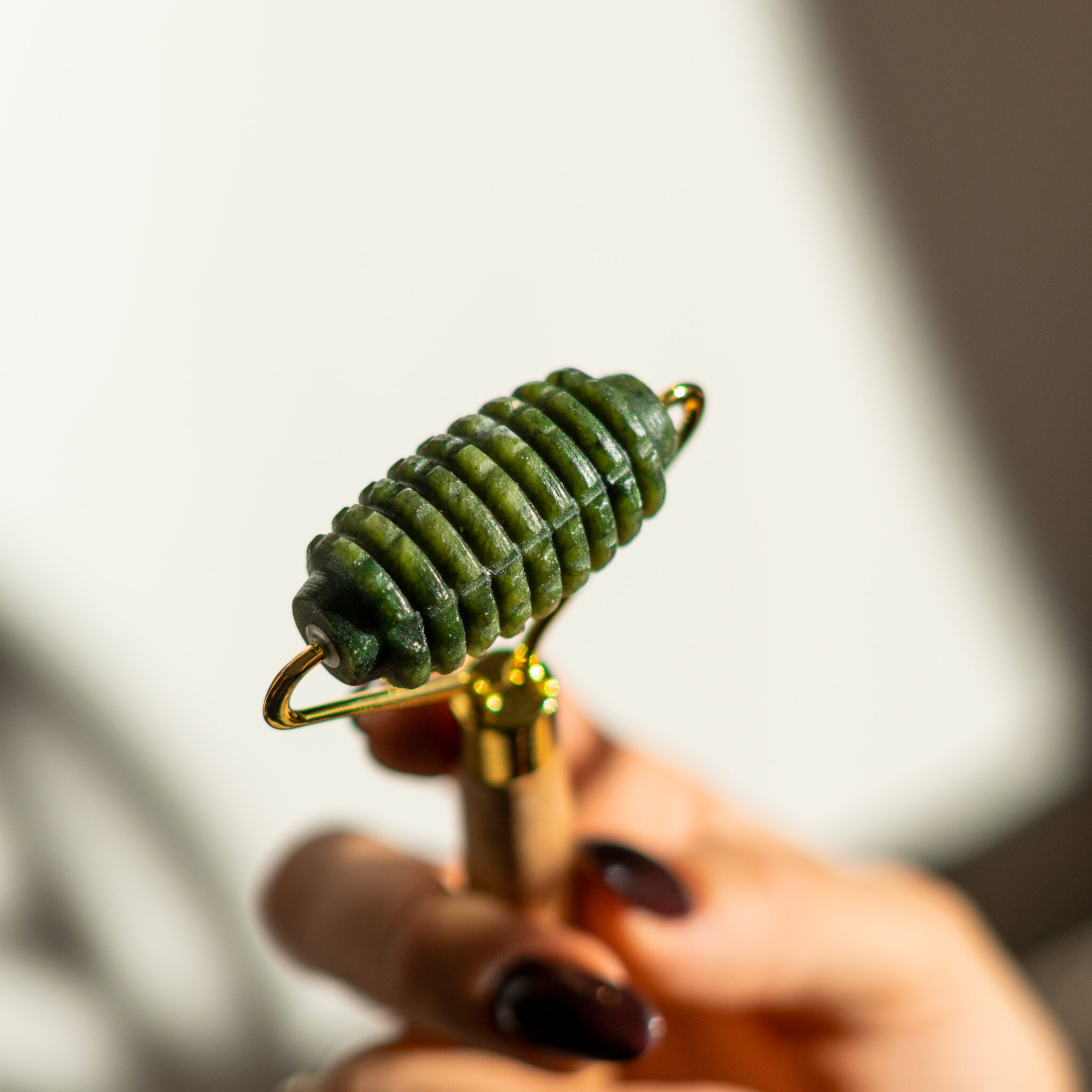 Zielony kamień często wykorzystuje się w zabiegach bioteraupetycznych. W pielęgnacji jest wprost nieoceniony – jego naturalne właściwości chłodzące i kojące przynoszą ulgę nawet najbardziej wymagającej skórze, wspierając jej regenerację i przywracając wewnętrzną równowagę. Masaż jadeitowym rollerem to doskonały pomysł, jeśli chcesz szybko obudzić skórę, kiedy rano brakuje Ci czasu. Nawet bezpośrednio przed wyjściem do pracy. Wieczorem przyjemnie ją zrelaksuje.